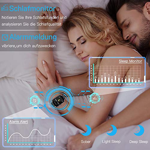 【Multifunktional】:Schrittzähler,Entfernung,Kalorienberechnung,Übungsmodus,NachrichtenPush FitnessTracker,Informationsspeicherung,Herzfrequenzüberwachung,Schlafüberwachung,Blutdruckmessung,Blutsauerstoffsättigungsmessung,Stoppuhr,RemoteFotografie, Musiksteuerung,Wasserdicht IP68 .