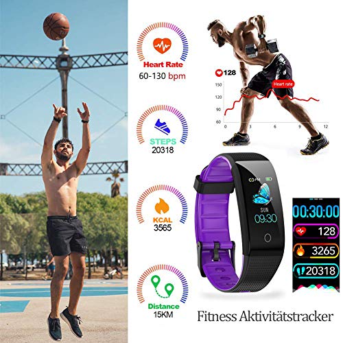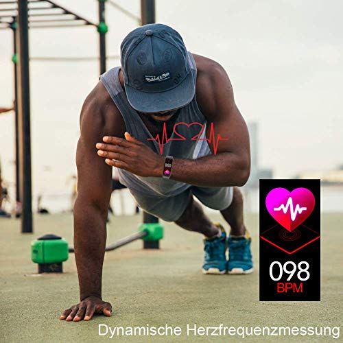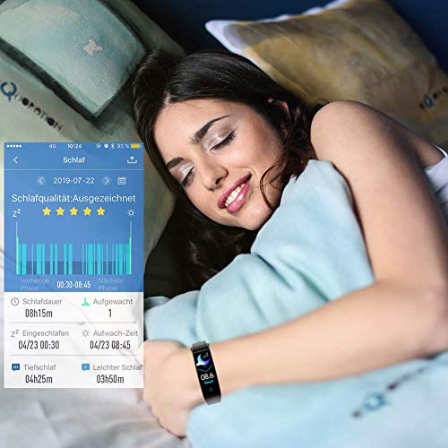 【Fitness Armband mit Blutdruckmessung/Pulsmesser】Kontinuierliche, automatische, am Handgelenk basierende Herzfrequenzmessung ohne unangenehmen Brustgurt. Es hilft Ihnen dabei, Ihre Gesundheit und Fitness besser zu verstehen. Sie erfasst automatisch, wie lange und wie gut Sie schlafen und weckt Sie mit einem lautlosen Vibrationsalarm auf.