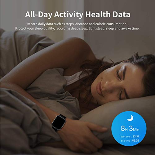 ⌚【Herzfrequenzmessung & Schlafüberwachung】: Der neueste eingebaute optische Sensor kann die Herzfrequenz und die Schlafqualität effektiv messen und kontinuierlich 24 Stunden lang überwachen, erkennen automatisch Ihre Herzfrequenz (Sie können das Diagramm für die dynamische Herzfrequenzkurve für den ganzen Tag in der App anzeigen) und bieten umfassende Schlafqualitätsanalysen (Tiefschlaf, Leichtem Schlaf und Wachschlaf), um Sie bei der Entwicklung eines gesünderen Lebensstils zu unterstützen.
